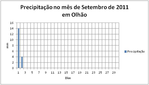 Quanto à precipitação de notar que o mês de Setembro foi seco a normal no Algarve. A precipitação variou entre os 6.2 mm em Faro/Aeroporto e Lagoa e os 27.6 mm em Portimão.