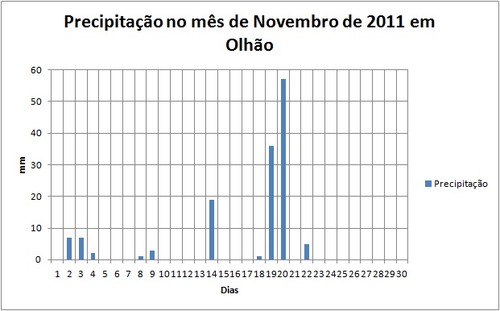 Quanto à precipitação de notar que o mês de Novembro foi chuvoso no Algarve. A precipitação variou entre os 53.6 mm em Albufeira e os 159.8 mm em Alte.