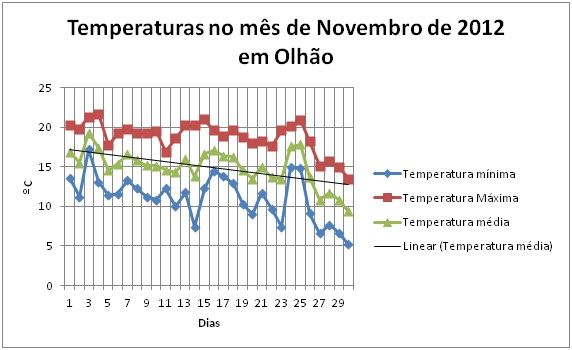 Além de chuvoso, Novembro foi um mês frio. A temperatura média foi mais baixa do que a média dos últimos 20 anos em 0,8 graus. O valor mais baixo ocorreu na serra da Estrela, no dia 28: os termómetros desceram aos 3,6 graus negativos.